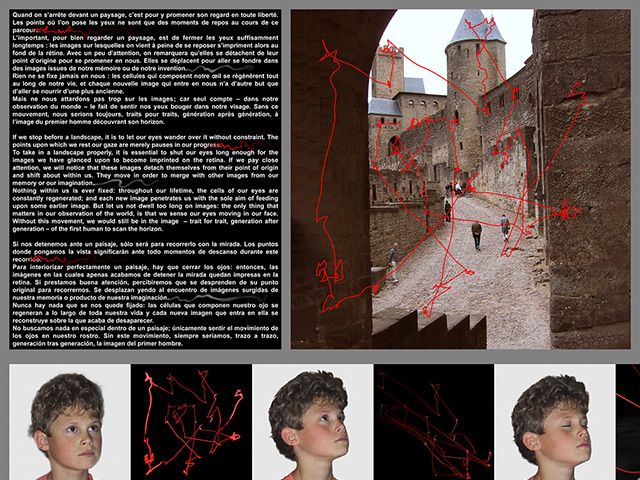 Mais ne nous attardons pas trop sur les images; car seul compte – dans notre observation du monde – le fait de sentir nos yeux bouger dans notre visage. Sans ce mouvement, nous serions toujours, traits pour traits, génération après génération, à l’image du premier homme découvrant son horizon.