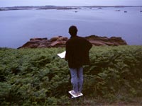 Durant son séjour, Oskar fut hanté par le désir de comprendre ce qui venait de lui arriver. On raconte qu’il passait ses journées à faire le tour de l’île, s’arrêtant systématiquement de longues minutes toujours aux mêmes points de vue. A aucun moment, il ne s’aperçut que Lucie Jourdan, dont l’admiration pour son oeuvre était sans limite, l’avait dessiné lors de chacune des invariables stations qui rythmaient ses promenades quotidiennes. Malheureusement, par la suite, ces croquis furent si souvent manipulés qu’après un an à peine, ils commencèrent à s’effacer inexorablement, rendant aujourd’hui toute reproduction impossible.