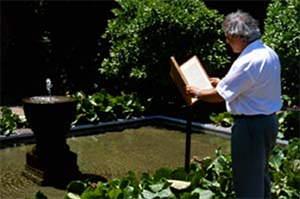 De retour au jardin, je disposai tout autour de mon livre les photos que j’avais prises des nouveaux amis de Chloé. Ainsi, chaque fois que je débordais de la page, la simple vue de leur tête me faisait détourner les yeux de dégoût, et comme un chariot de machine à écrire, me renvoyait avec une force inouïe à la ligne suivante de mon histoire.