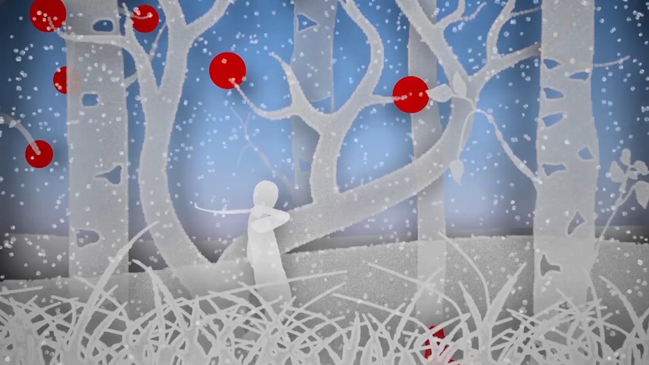Das Kind schließt seine Augen und in der Ferne erscheint ihm der jenige, der ihn im Wald verloren hat. Das ist der Waldgeist.