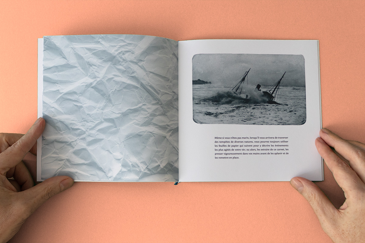 On raconte qu’après le passage de violentes tempêtes, les pêcheurs d’Islande, dans un mouvement chargé de la frayeur qui venait de les frapper, empoignaient nerveusement une feuille vierge de papier à lettres et la comprimaient dans leurs poings serrés. Puis, le calme revenu, ils aplanissaient la feuille en passant bien le pouce sur chacune des froissures comme s’ils soumettaient une mer démontée. Lorsqu’ils en avaient accumulé suffisamment, ils les réunissaient sous forme de « carnets de tempête » qu’ils légueraient plus tard à leurs enfants.