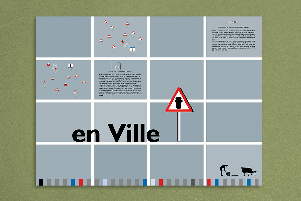 Lorsque nous marchons dans la ville, nos pensées sont reliées entre elles par des points d’articulation tels que : escaliers, grilles de jardins publics, places, passages zébrés, feux rouges… Au cours de notre parcours, ils jouent le même rôle que celui occupé dans un texte par les conjonctions de coordination, subordination, ou les signes de ponctuation tels que les points-virgules, les points d’interrogation ou d’exclamation, les trois points et les tirets.
