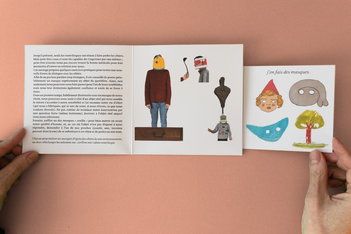 Chacun peut réaliser ses masques d’après des objets de son environnement, ou alors télécharger les existants sur : corillon.net/cahierventriloque
