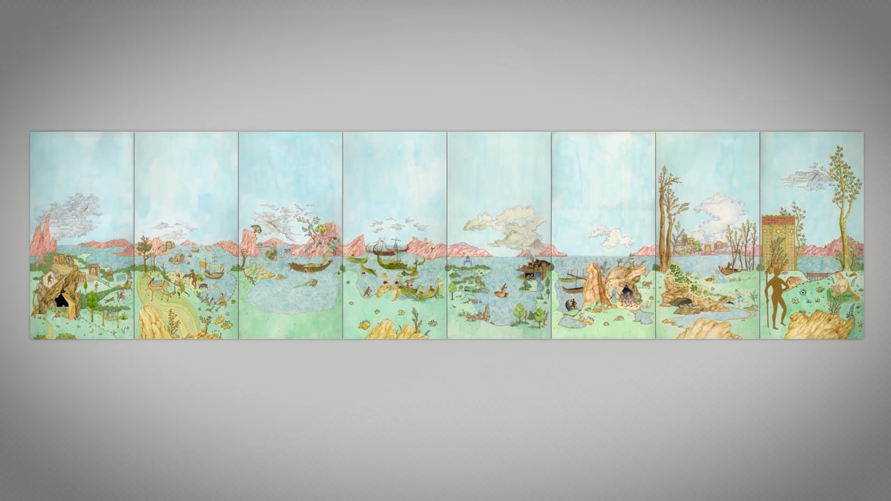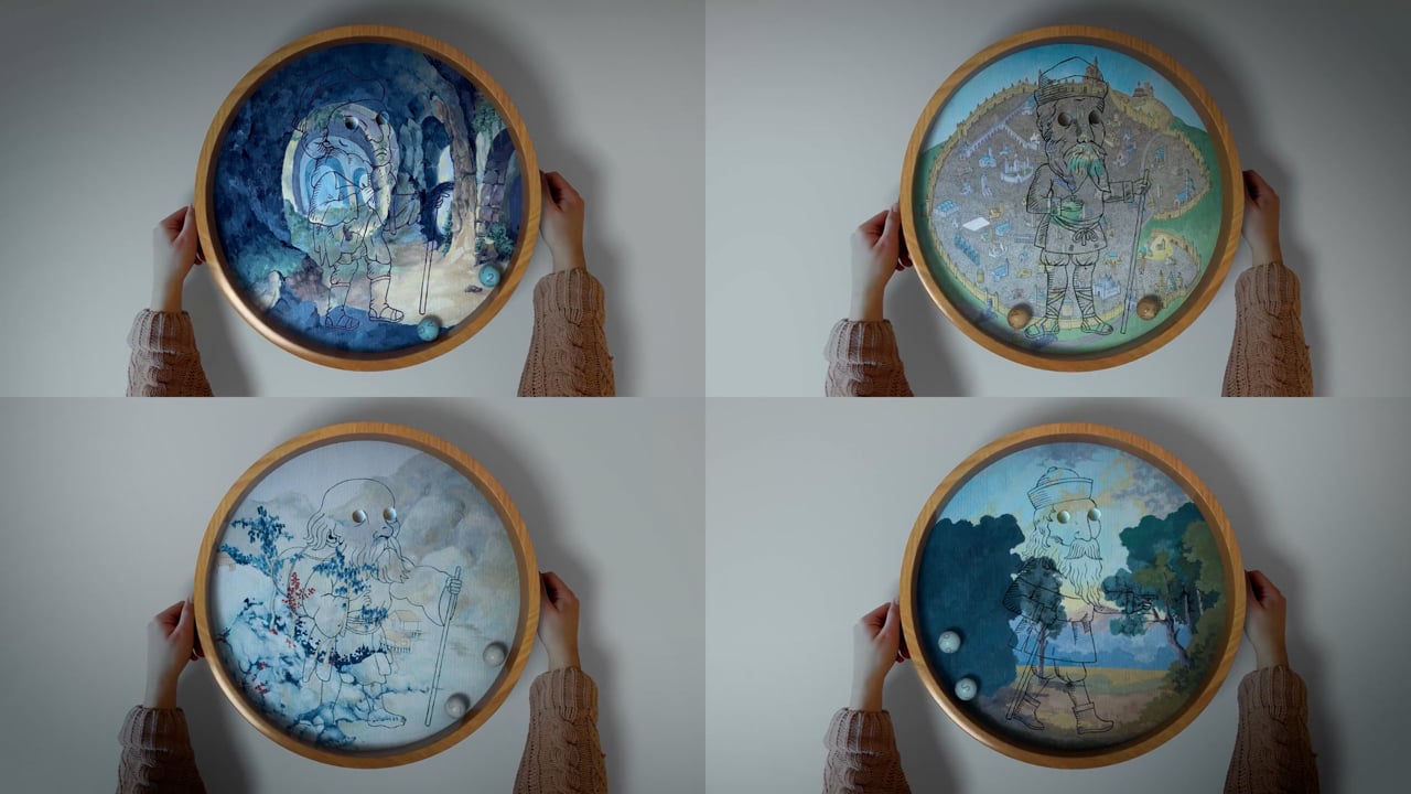 A narrator tells of odysseys in shattered landscapes that each spectator animates with their own hands, using a game board placed on their knees. As the stories unfold, landscapes are created out of cubes that the spectators assemble, beads that they slide, fabrics that they unroll and unthread, and discs that are made to turn.